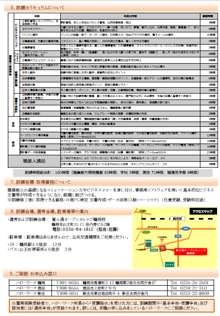 ■訓練会場 〒997-0028 山形県鶴岡市山王町11-17 荘内寿ビル2階 富士通オープンカレッジ鶴岡校